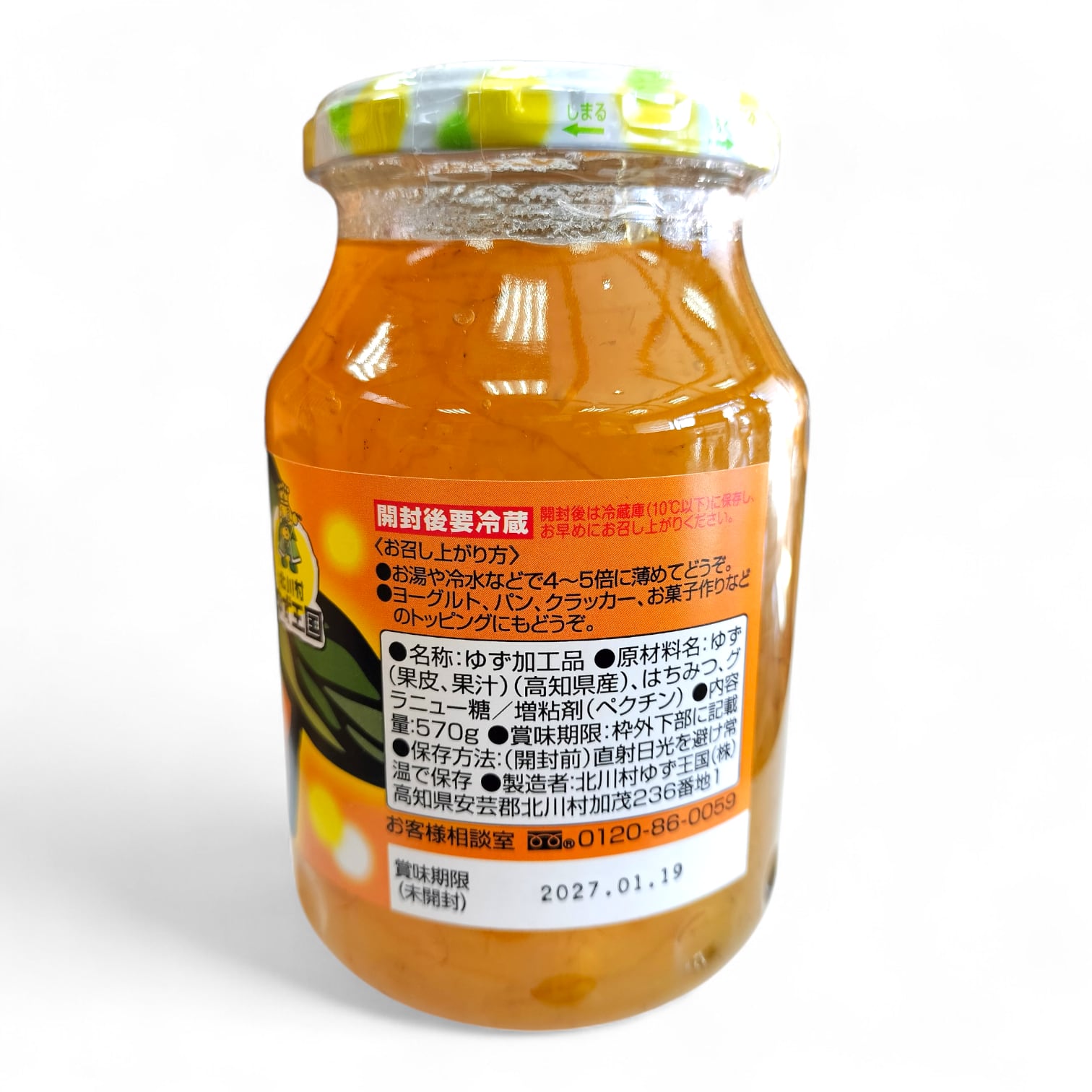 原材料:ゆず(果皮・果汁/高知県産)、はちみつ、砂糖