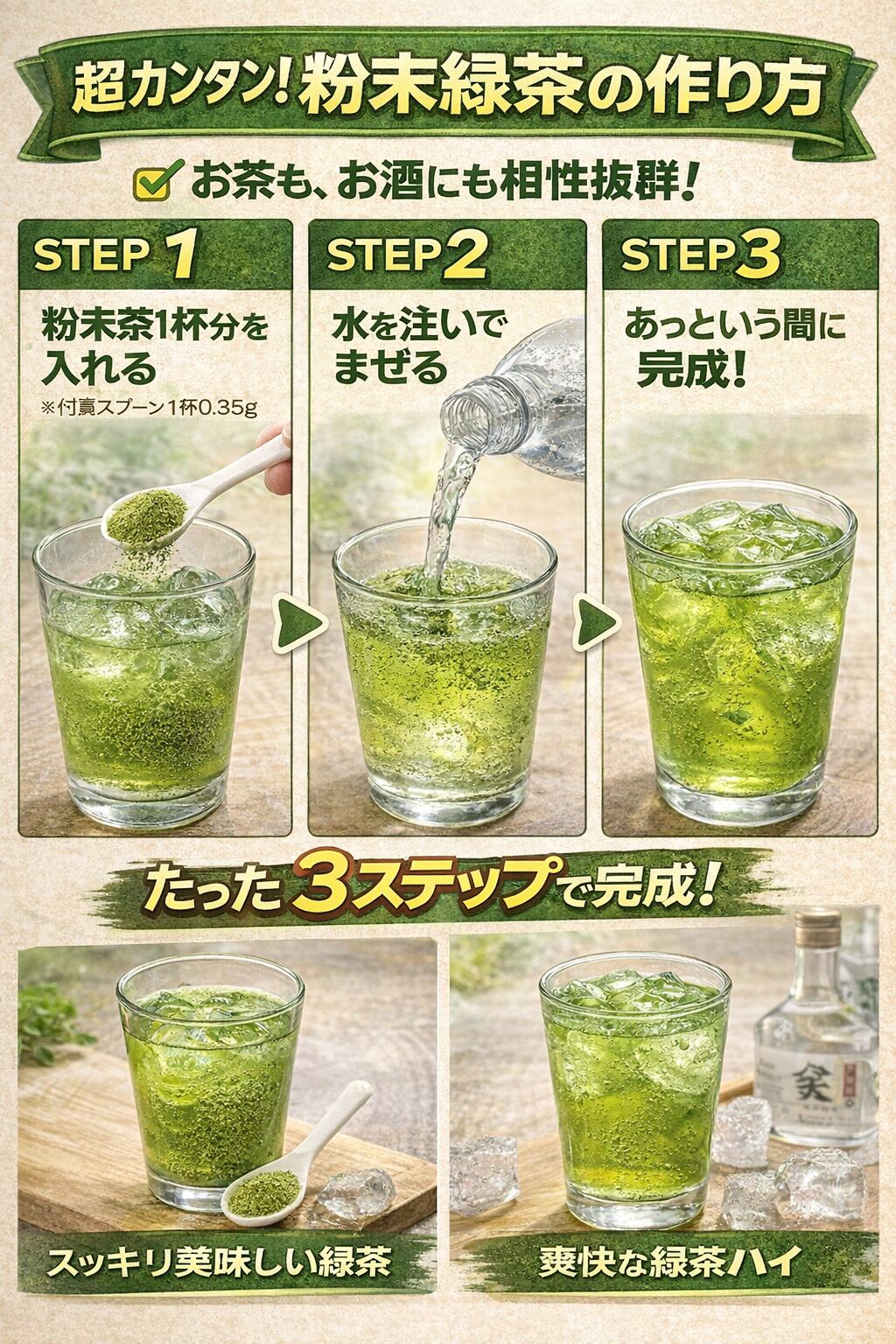 【業務用・大容量】粉末緑茶500g|水で溶ける|茶殻ゼロ|お茶割り対応|飲食店向け